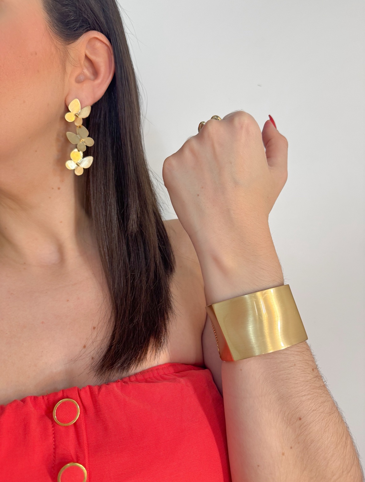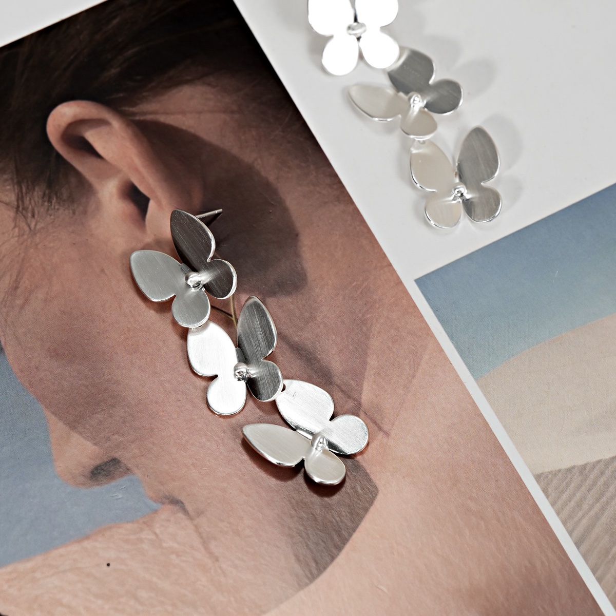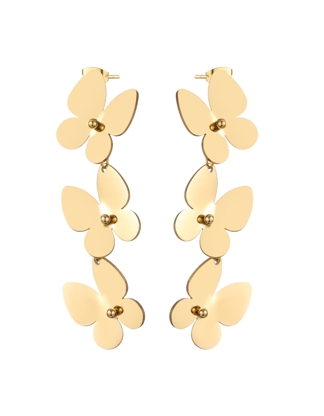 Brinco borboleta fosca disponível no dourado e prata.