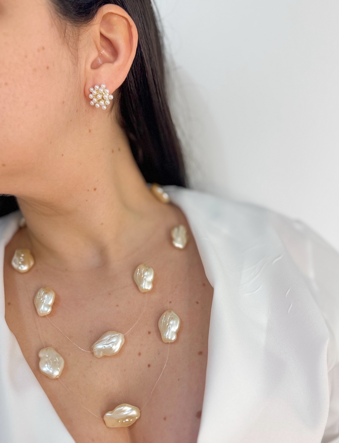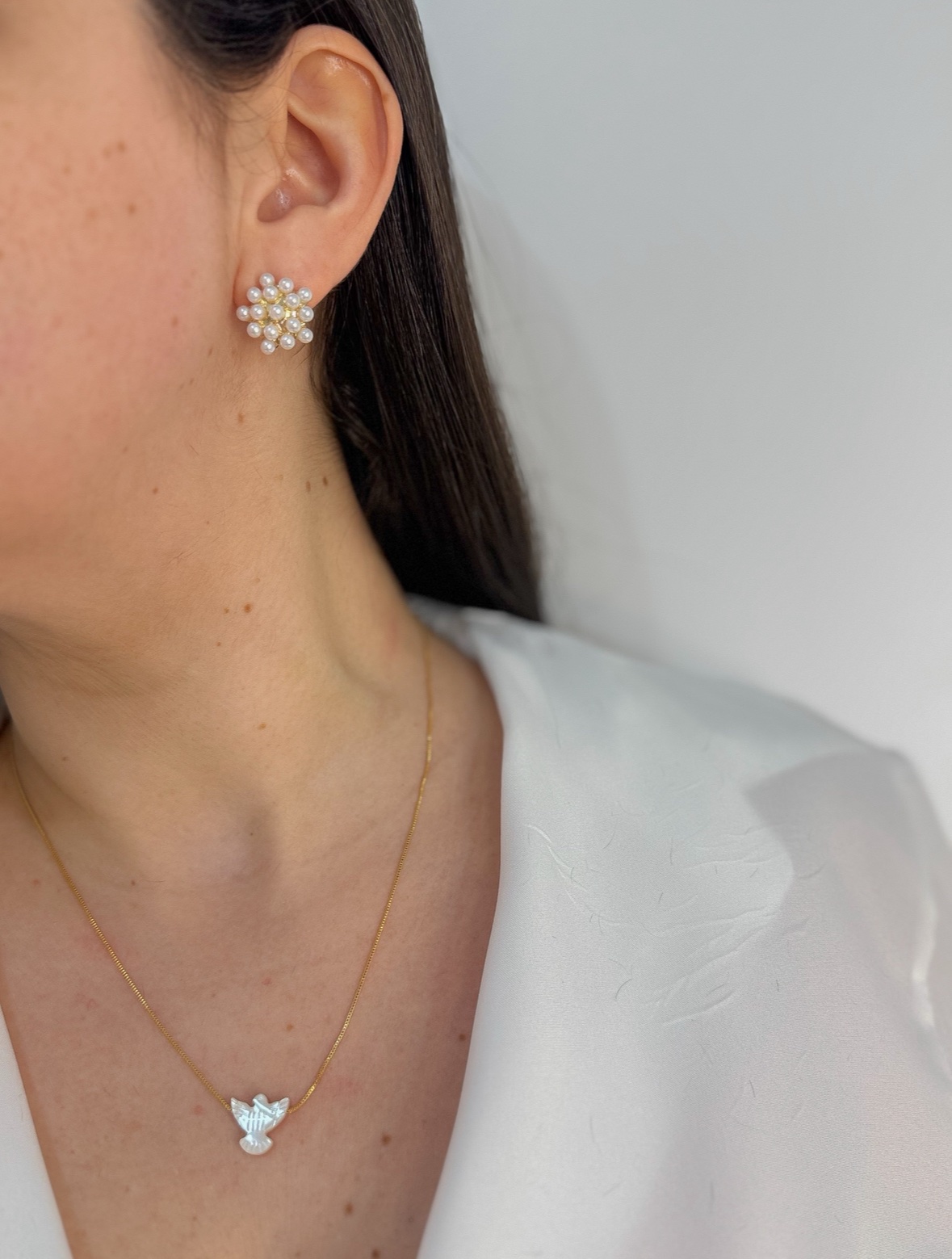 Brinco cacho pérola no prata