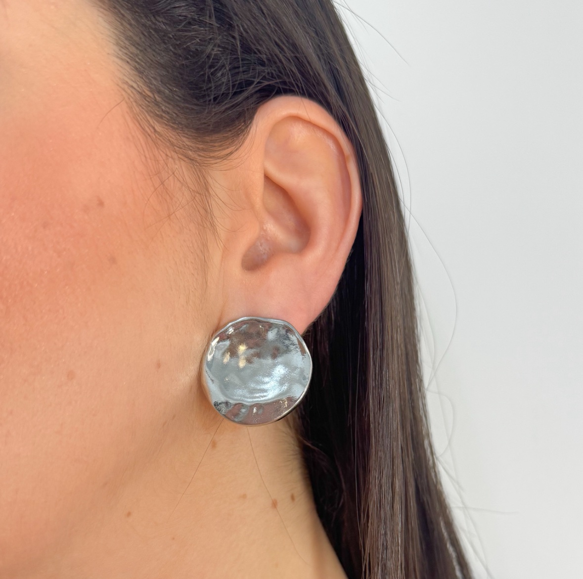 Brinco botão martelado prata
