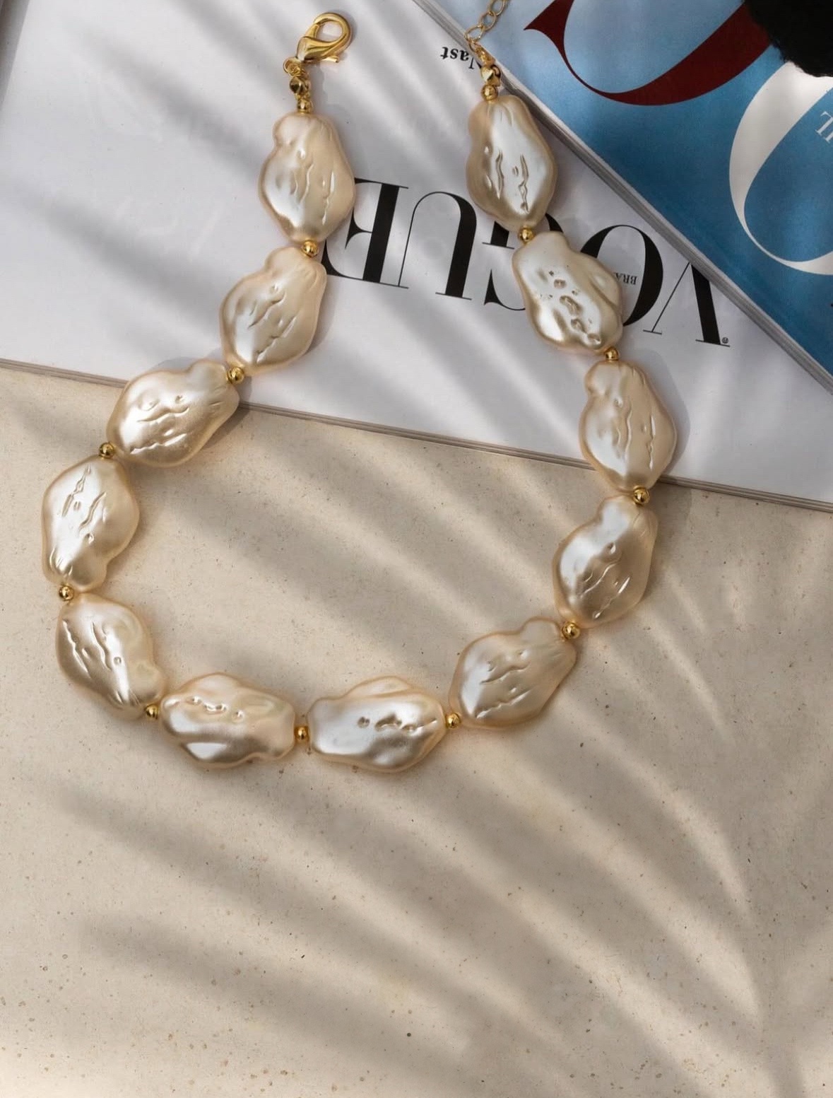 Choker com pérola irregular sintética inspiração pérola de água doce.