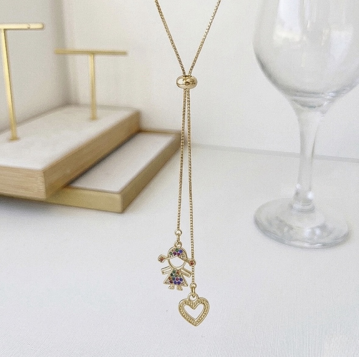 Colar gravatinha com a corrente veneziana folheada com dois pontos de luz na ponta