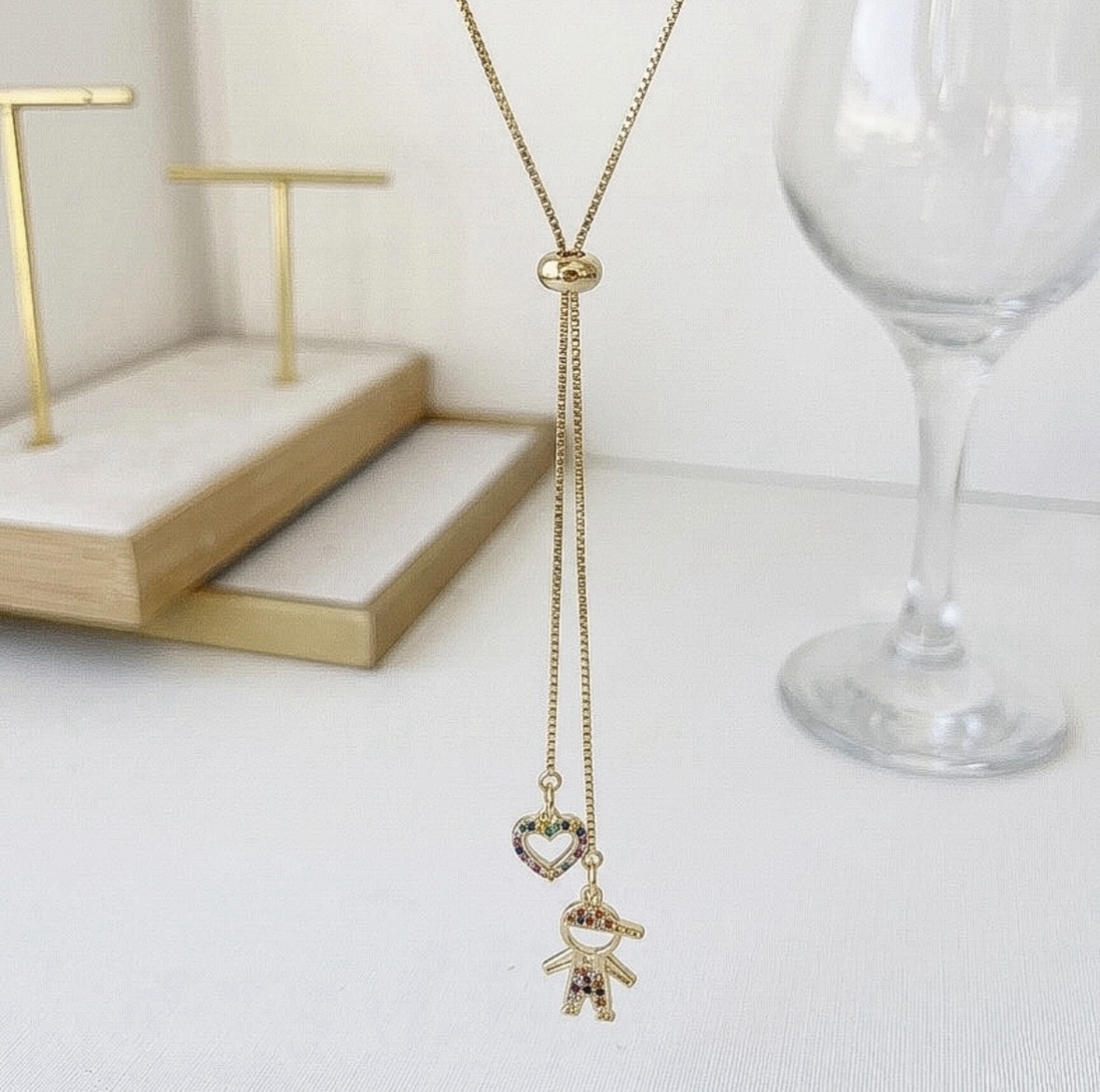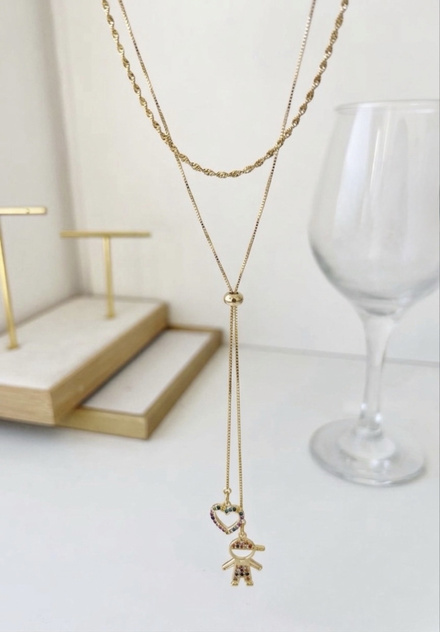 Colar gravatinha com a corrente veneziana folheada com dois pontos de luz na ponta