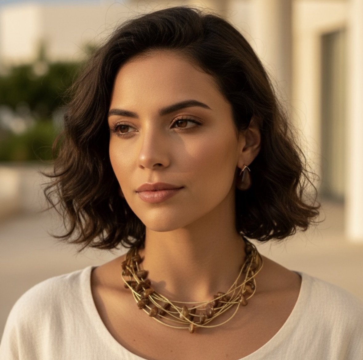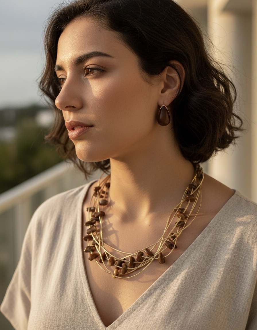 Colar cascalho marrom no courinho dourado