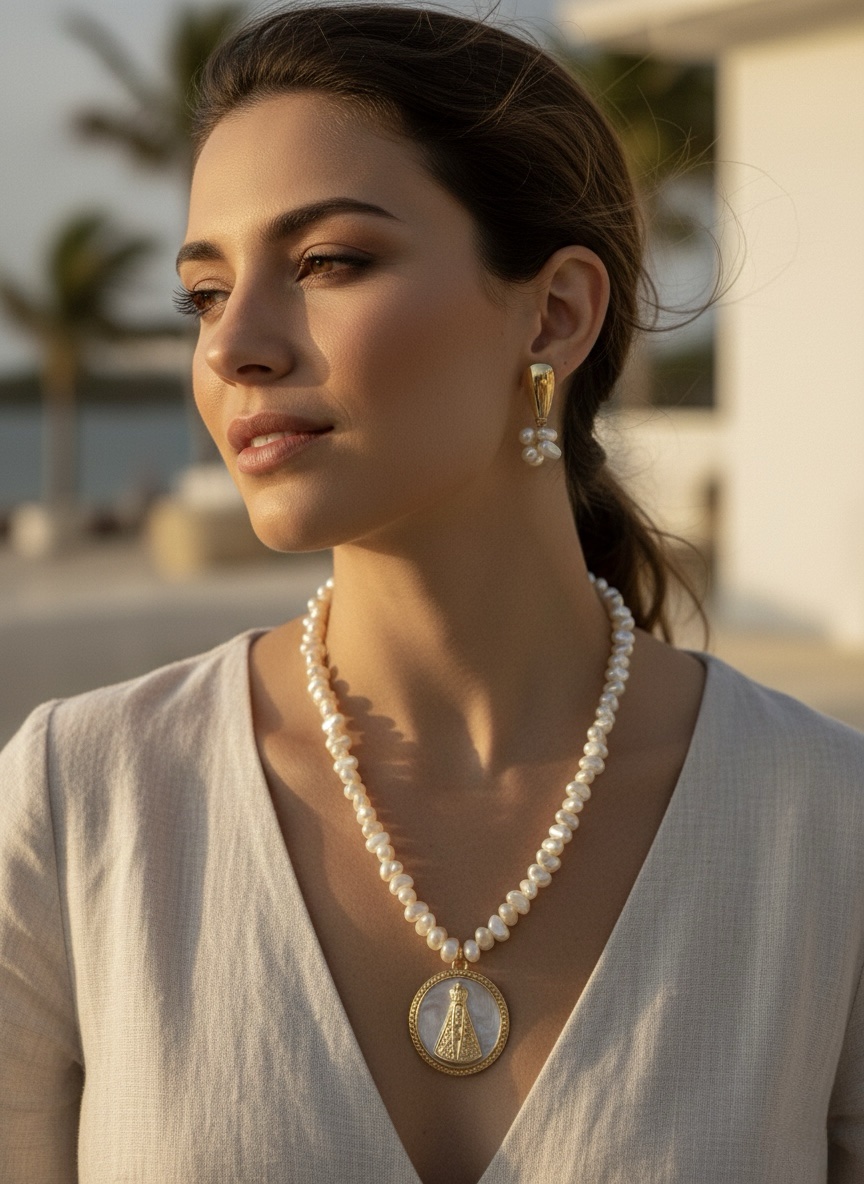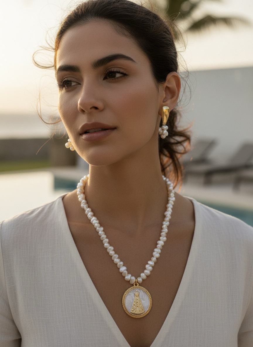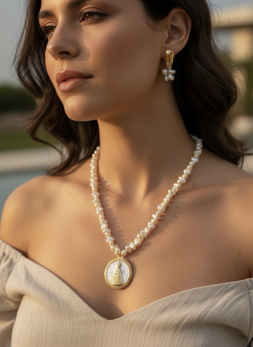 Colar nossa senhora aparecida com pérola irregular
