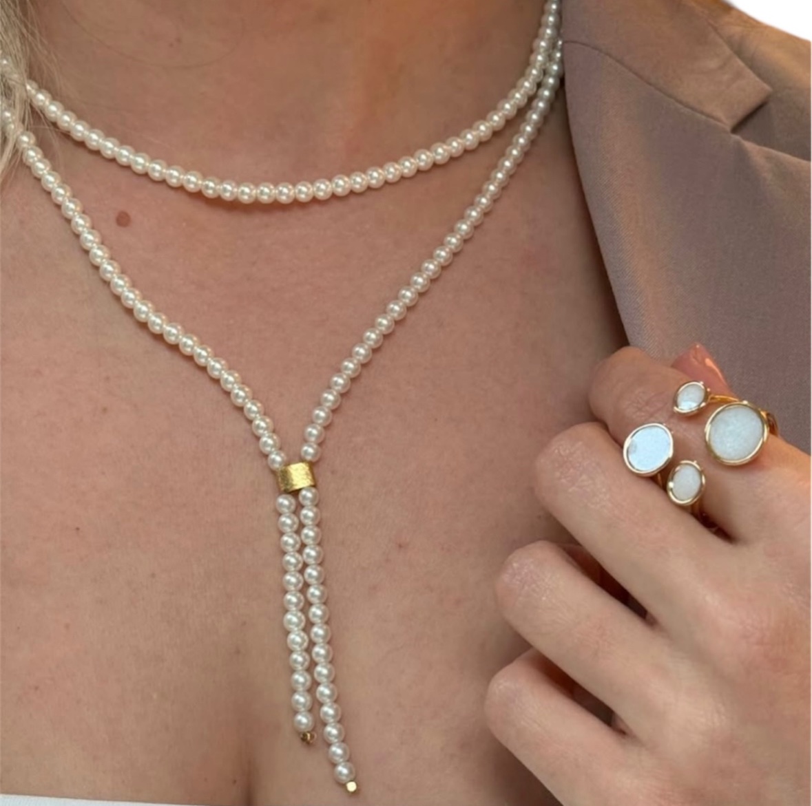 Colar gravatinha pérola redonda