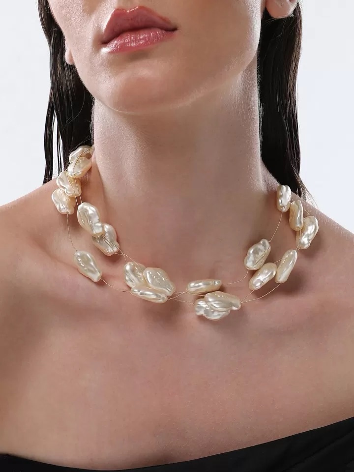 Colar pérola irregular 4 voltas