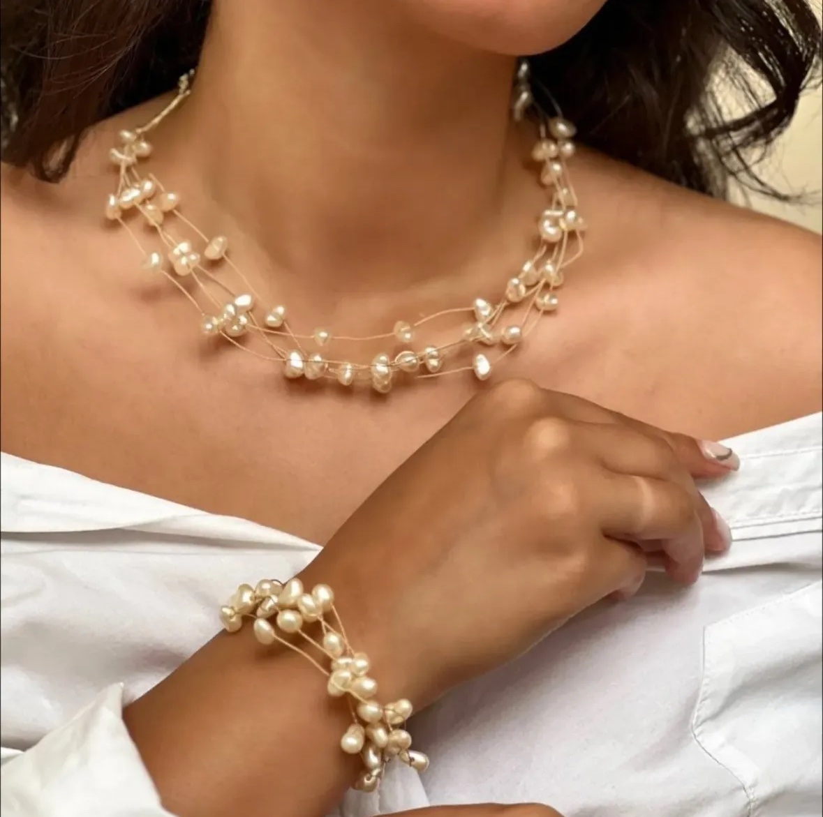 Colar pérola disforme 4 voltas