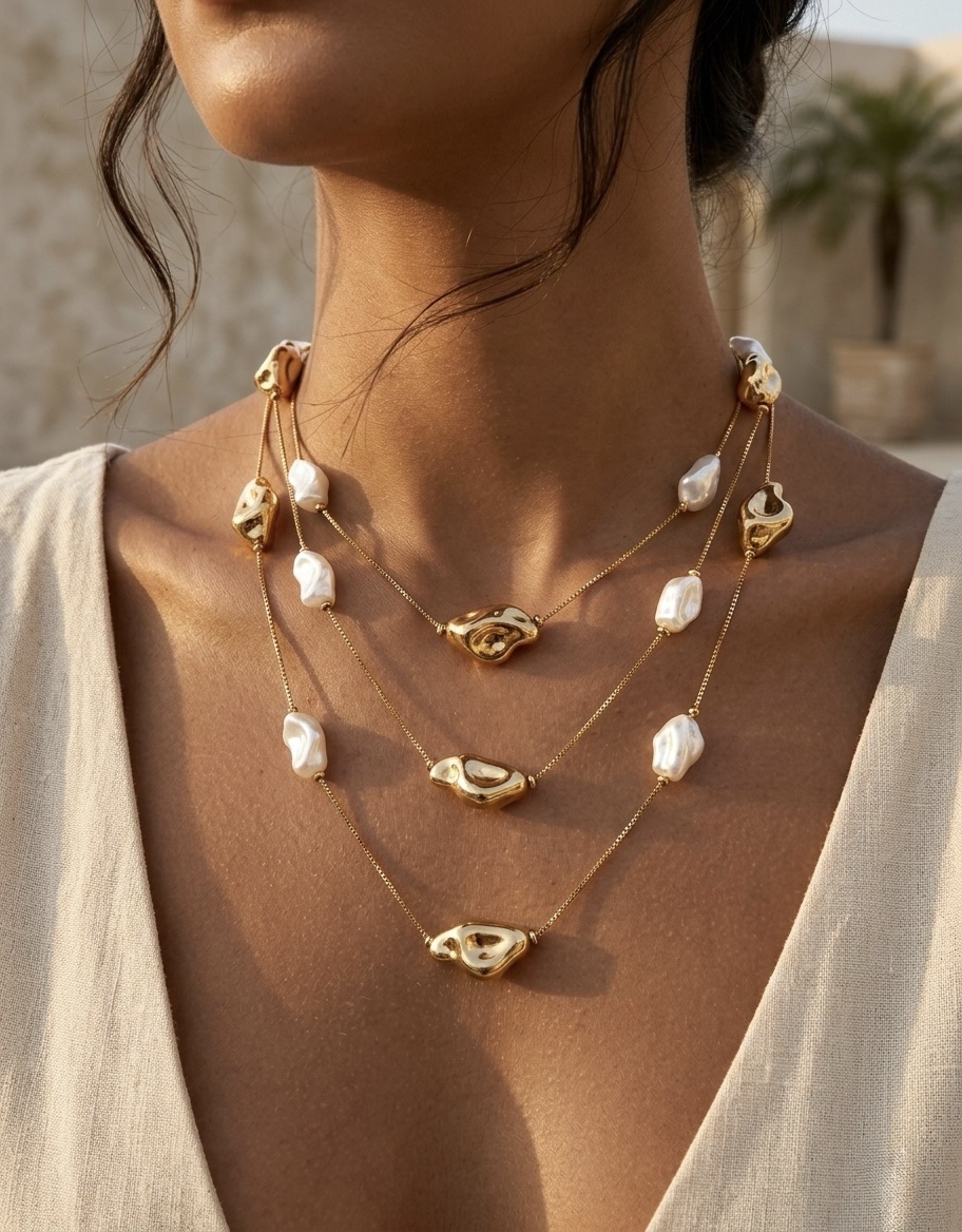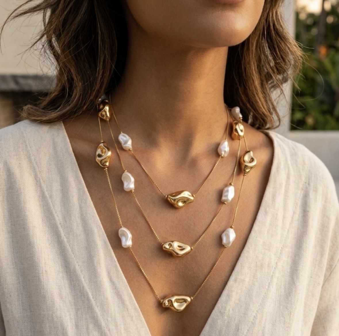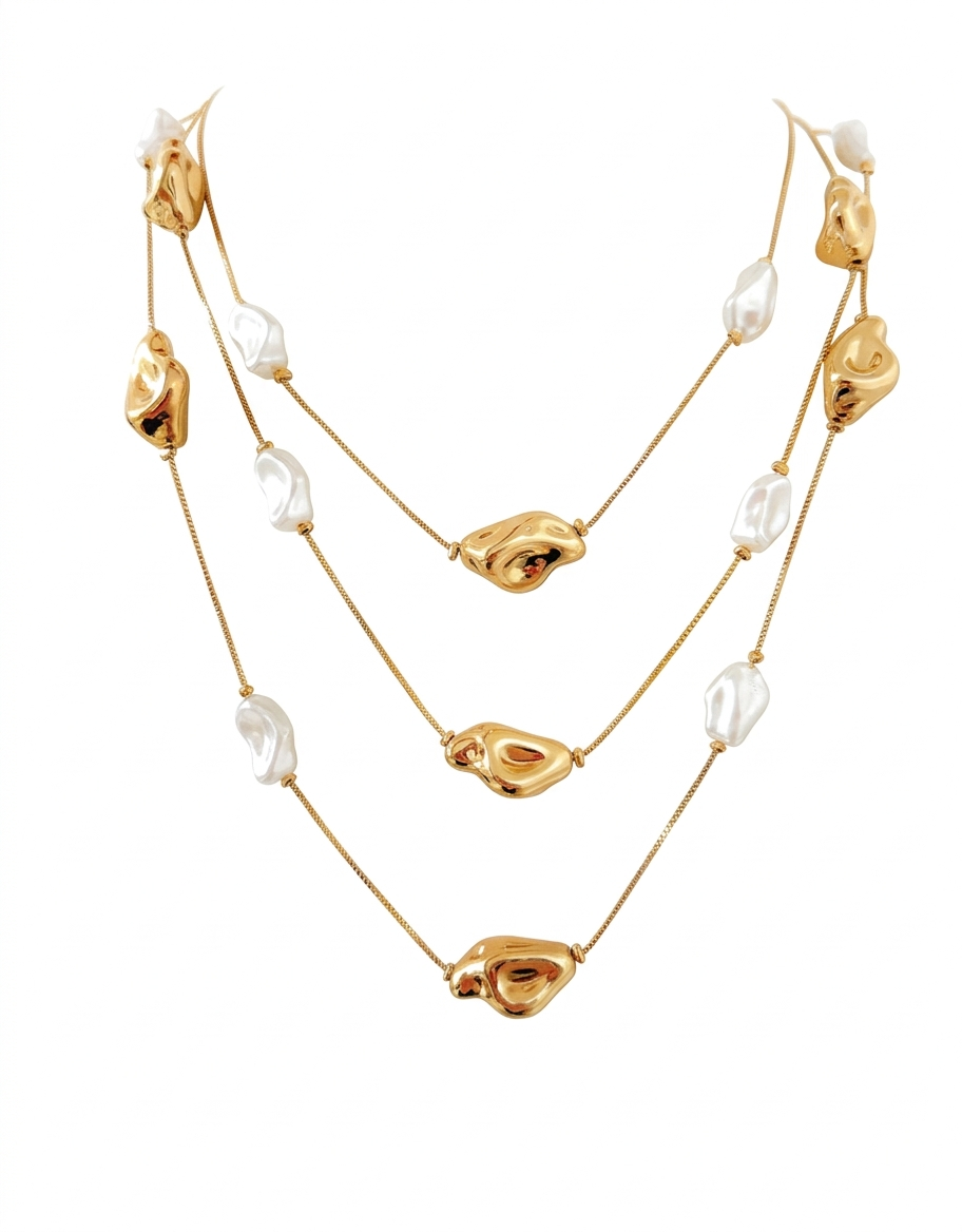 Colar três voltas pérola disforme