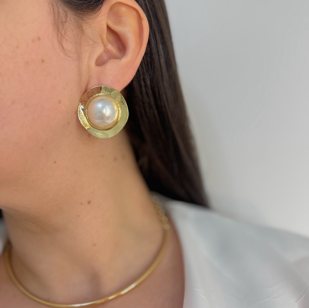 Maxi brinco pérola orgânico dourado