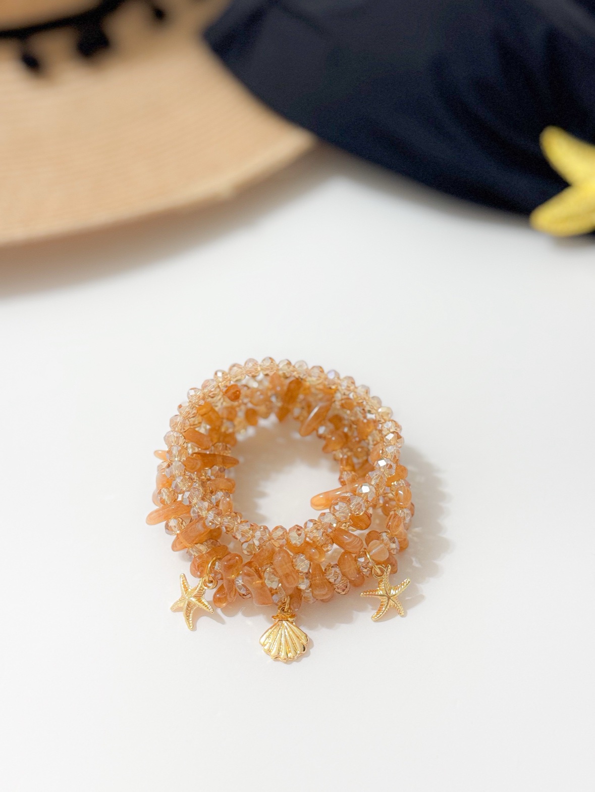 Mix 5 pulseiras cristais com cascalho doce de leite