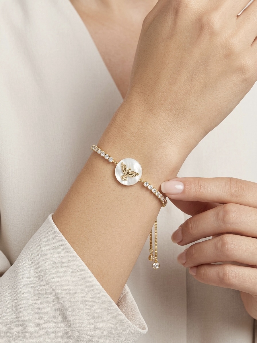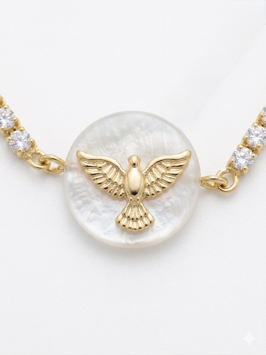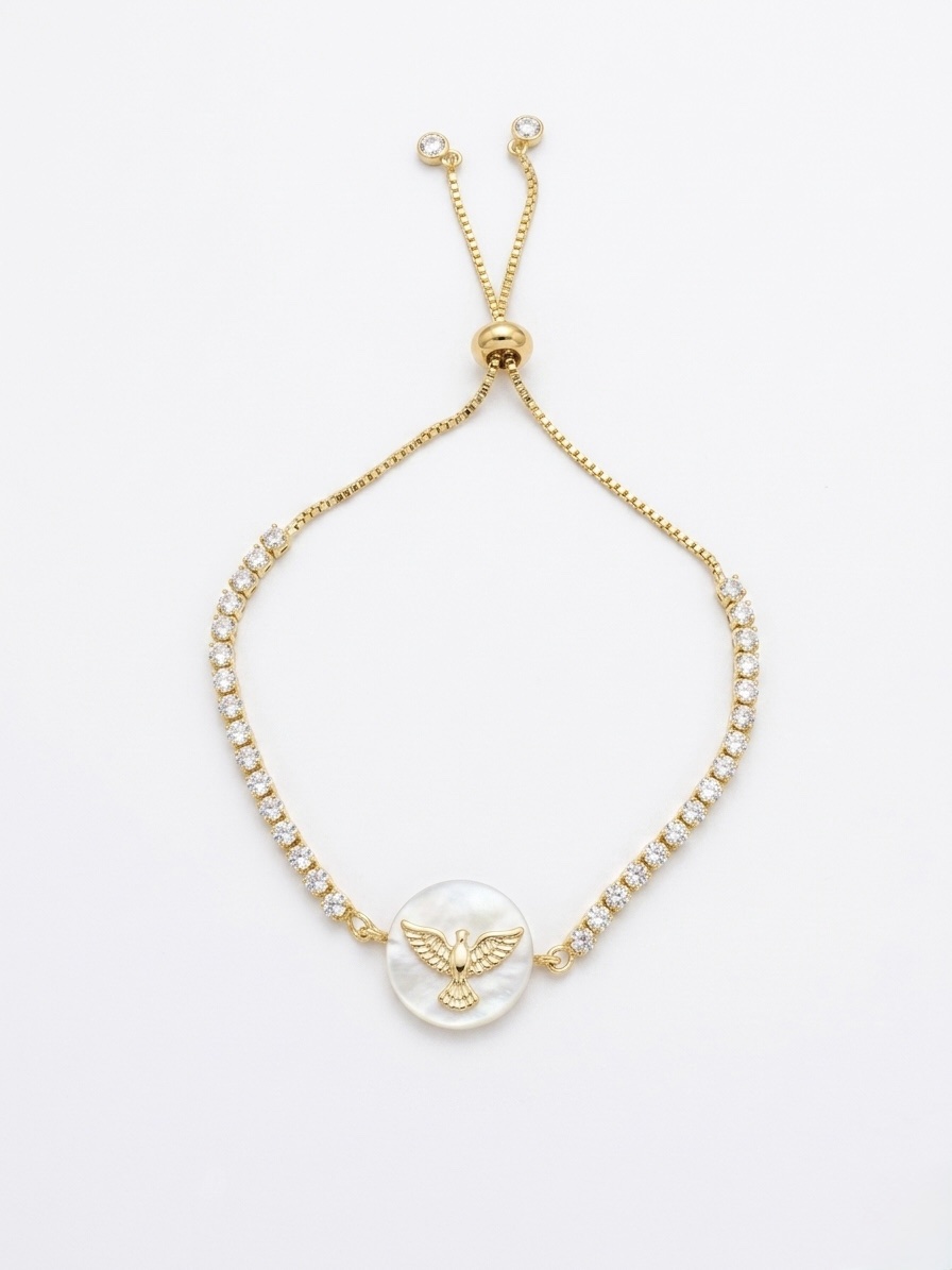 Pulseira regulável Espírito Santo madrepérola redondo com zircônia